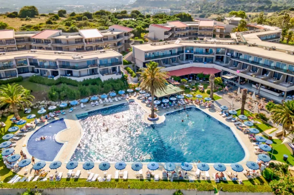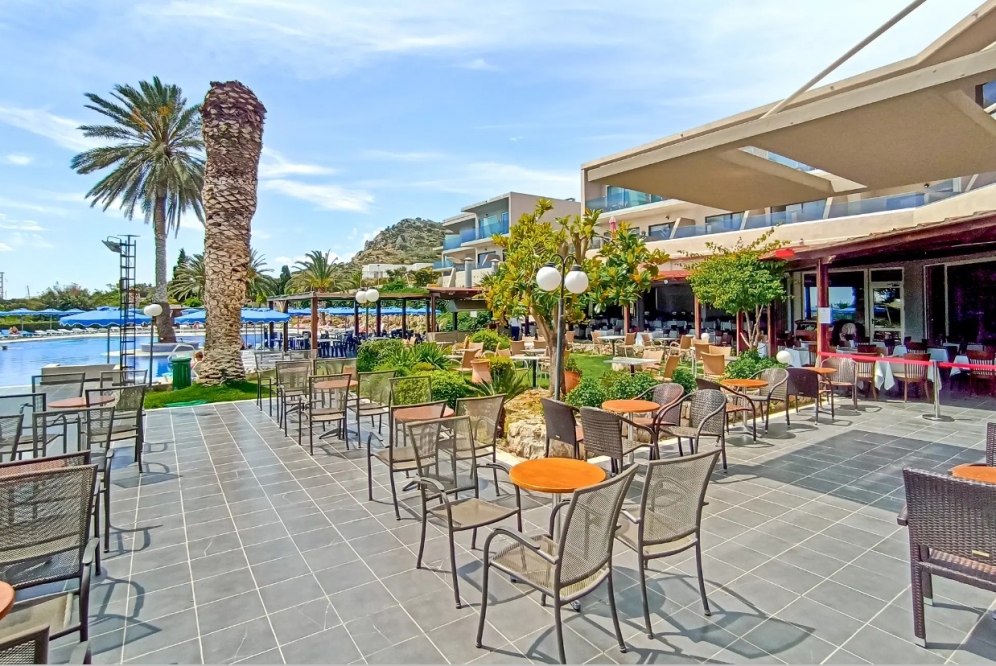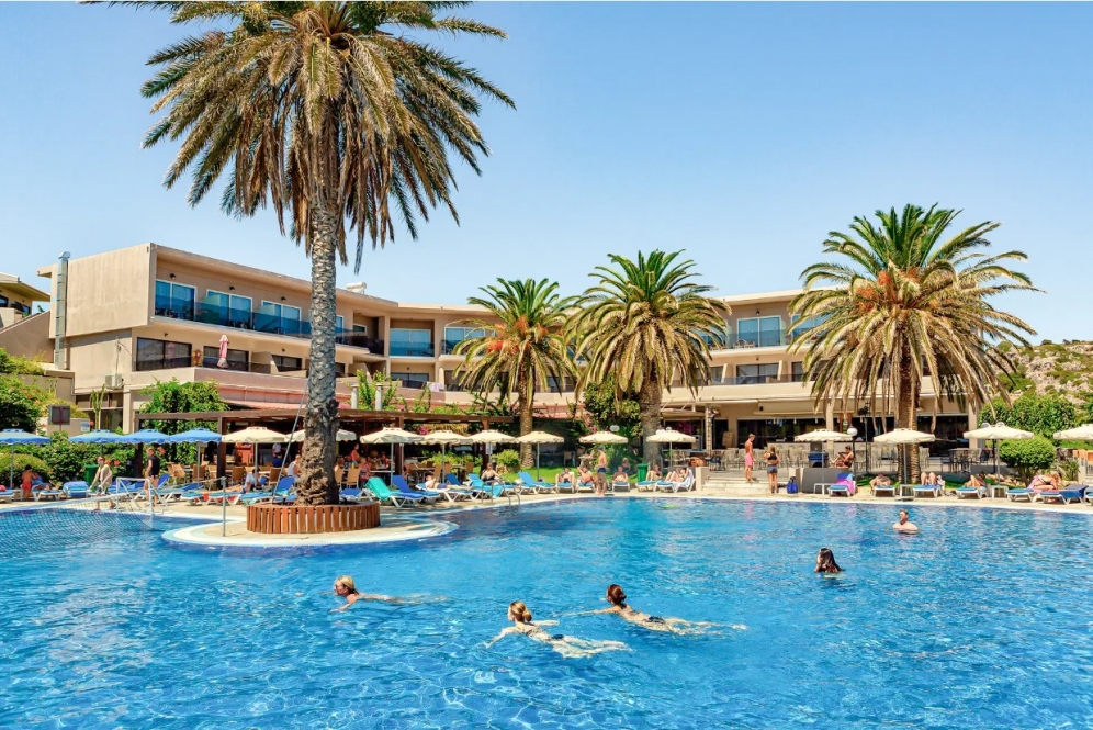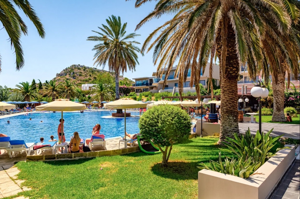 Located on the side of a mountain with wonderful views over the Mediterranean, this contemporary hotel offers the ideal setting to enjoy a fun-filled family holiday. Visitors might take a day trip to Lindos or Simi, as guests can catch the ferry from nearby Faliraki beach, or view the famous city sights of Rhodes after just a twenty-minute drive. Alternatively, guests might stay in the area to enjoy a variety of water sports at the beach or simply relax by the shimmering outdoor pool with a drink from the pool bar, while children play on the playground and in the children's pool. The hotel's spacious guest rooms are modern and simply furnished, each with a balcony and sea, mountain or garden views. Guests can enjoy delicious buffet meals in the hotel restaurant and take advantage of the hotel's many services and facilities including a fitness centre, tennis court, minimarket and car rental.