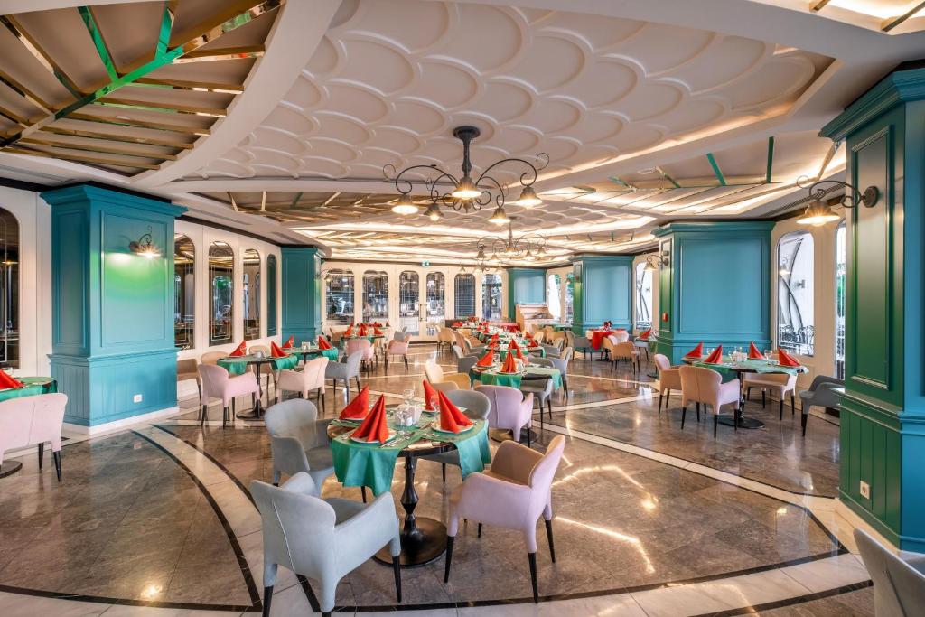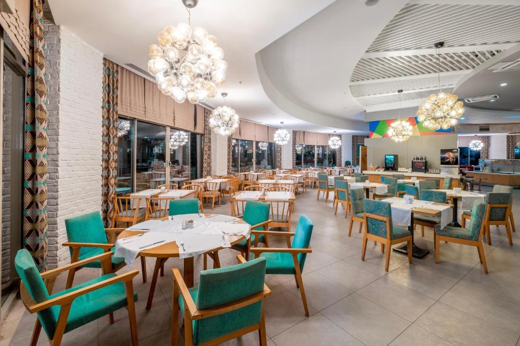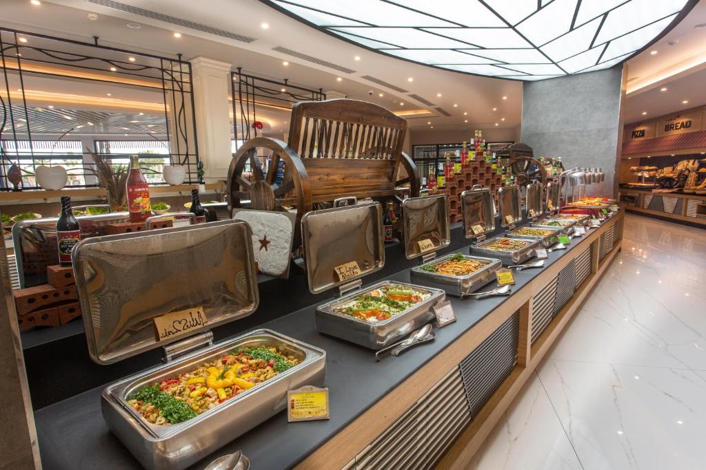 Hotellet har tre hovedrestauranter med buffetservering. Hayat Restaurant tilbyr internasjonale retter i et åpent buffetkonsept, mens Harmony Restaurant serverer raffinerte smaker fra både tradisjonelle og internasjonale kjøkken. Villa Restaurant har buffet hele dagen og byr i tillegg på kaker og fruktgodbiter.