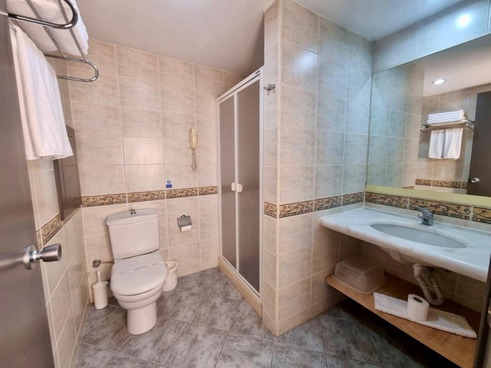 Plass til opptil fire personer. Ett soverom og stor oppholdsrom med kjøkken. Aircondition, satellitt-TV, telefon, minibar, elektrisk komfyr og kjøkkenutstyr. Balkong med to stoler og bord. Hårføner og telefon på badet. Wi-Fi og safe mot betaling.